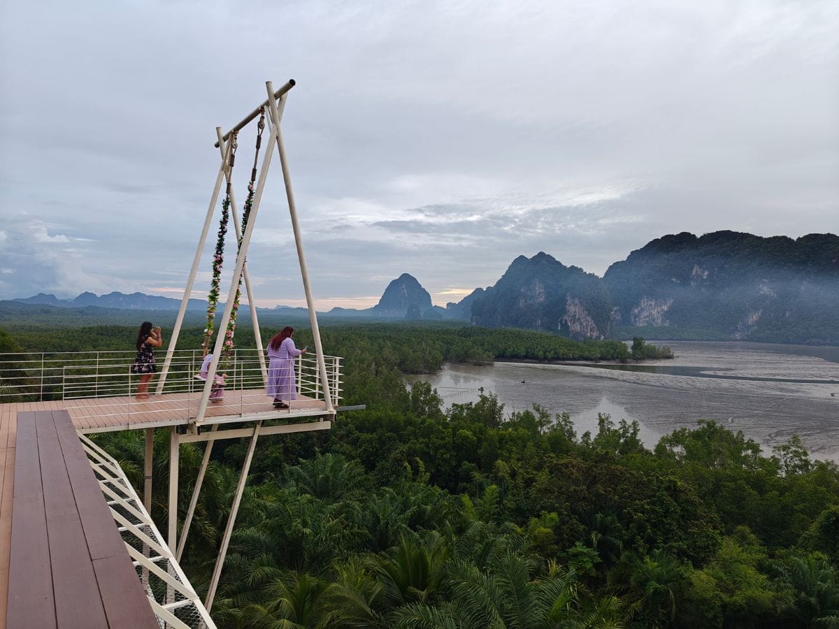 Pour saisir toute l’ampleur de la baie de Phang Nga, il faut prendre de la hauteur. Depuis les viewpoints de Samet Nangshe, le panorama se déploie à 360° : les pitons karstiques émergent d’une mer de brume au lever du jour, ou se parent d’or en fin d’après-midi quand le soleil décline. C’est ici que l’on comprend vraiment la géographie de ce territoire marin, avec ses îles dispersées et ses reliefs sculptés par le temps.